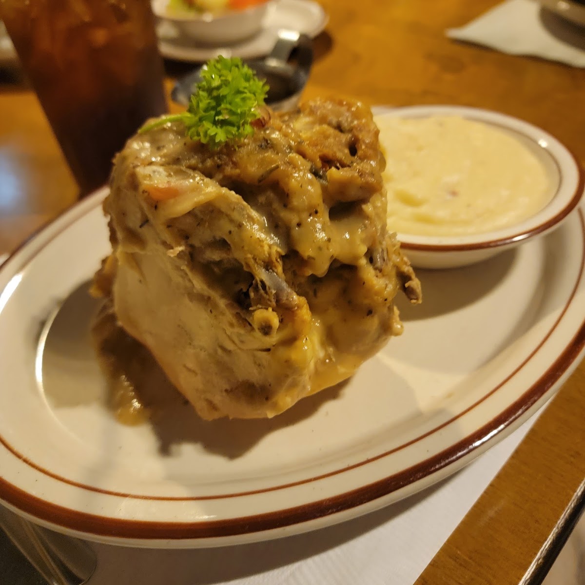 There was hardly anyone here, so there was no wait to be seated. The restaurant itself is very nice. There is a beautiful fireplace. Food was amazing! Service was great! I just don't like that they don't have their wings on the regular menu. Put all of your offerings on the same menu! Parking lot is kind of horrible if you're disabled.