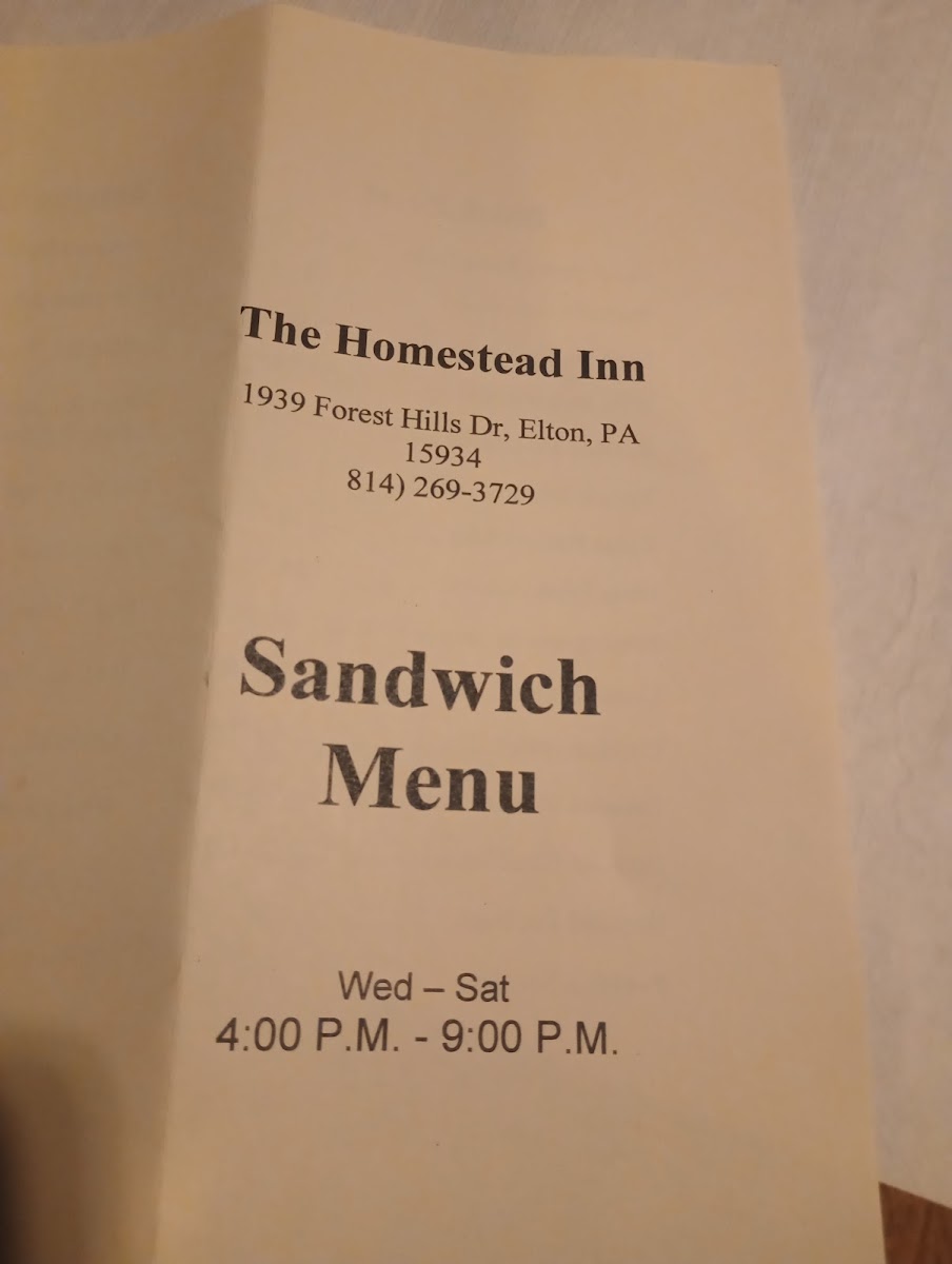Homestead Inn Menu